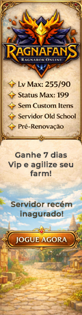 Pre-Renewal Full PvP e WoE lvl 255/120 | Status Max 255 | ASPD Max 195 Pack de item por voto Itens Balanceados Classes Balanceadas Staff Dedicada Todos os itens donate por quest Quests simplificadas, feitas para quem não tem tempo de farmar!!! Proteção Gepard Shield 3.0 Batalha Campal | PVP | WoE 4Tools Liberado | Adelays e Sistemas contra NDL Mercado Negro ON | Pack Guild Full